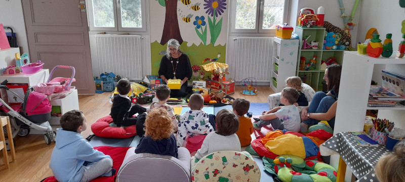 Séance de racontines et lectures le mercredi matin 15/10 à la ludothèque avec Christine Voisin (Dans la boîte de Christine) sur le thème de la semaine du goût. Un très joli moment et une belle participation des enfants
